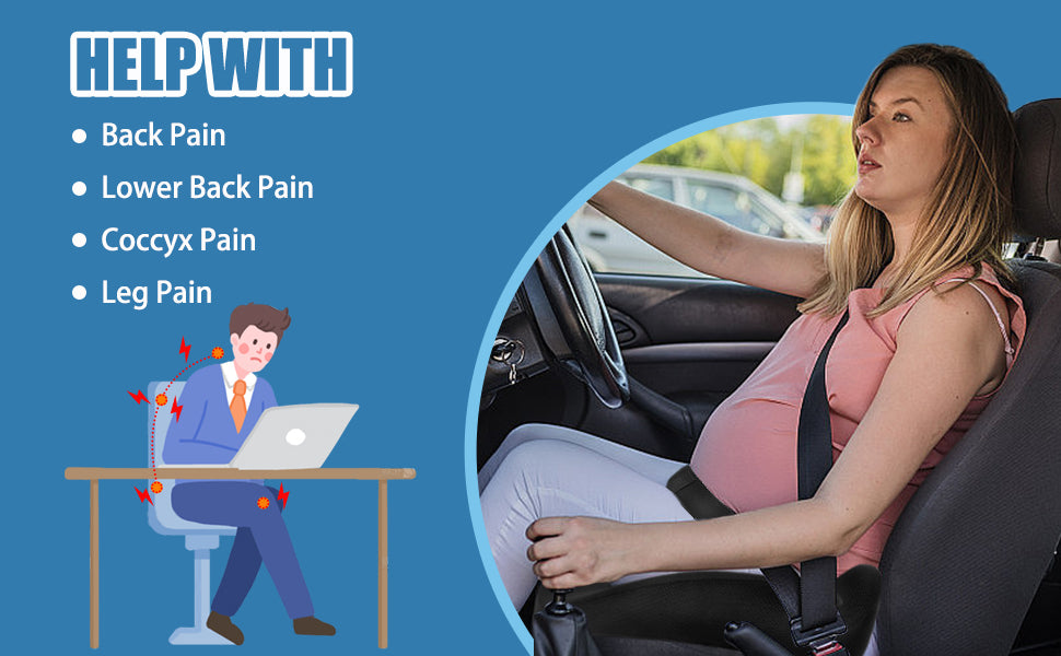 This pregnancy car seat cushion is crafted mainly from latex-free memory foam(both fill and fabric) — a breathable, comfortable material that eases sciatica, hip, and coccyx pain. Its cover is machine-washable for easy care, fitting the needs of pregnant drivers/passengers while aligning with NHTSA recommendations.